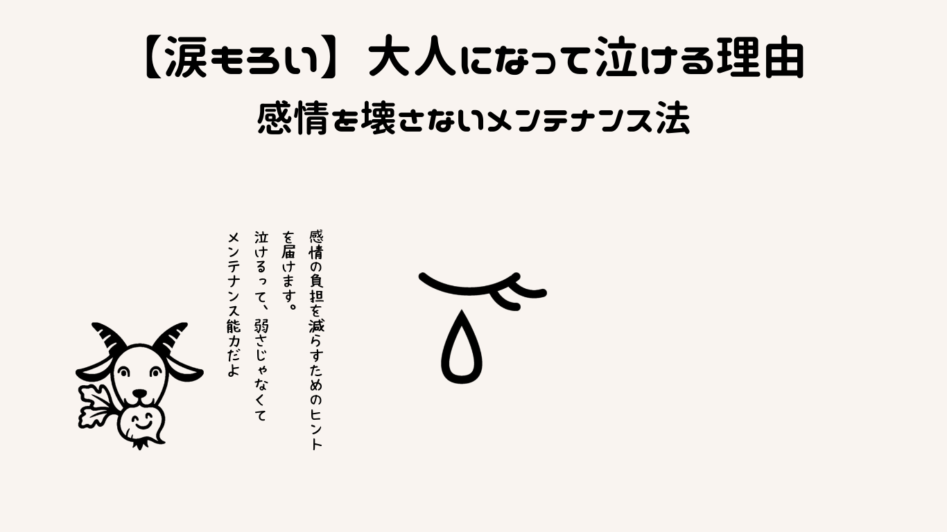 「泣いちゃダメ」ではなく、「これは心のメンテナンス中」と考えると、