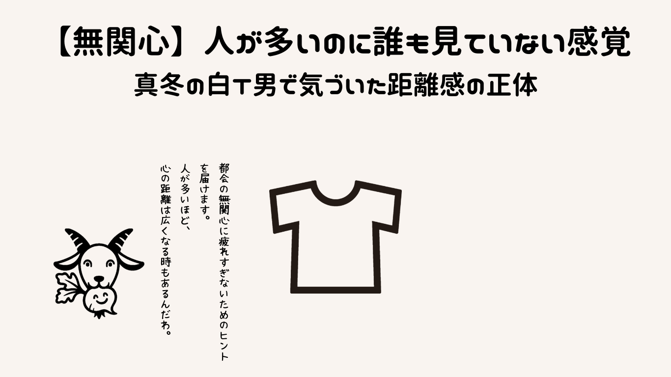 - 無関心は冷たさではなく、都市で生きるための知恵かもしれない
